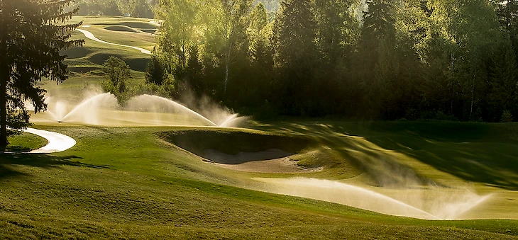- Я помню, как восхитился красотой местных ландшафтов. И как, если честно, немного испугался их же. Точнее, не испугался, а понял, что работы будет много. Тут ведь довольно большие перепады высот, и если на возвышающихся точках газон подсыхает, то в нижних точках как раз наоборот. Вода скапливается, какие-то участки земли даже заболачивались в свое время. Это была первая и главная проблема – влажность некоторых игровых зон. Даже фарвей, то есть зона между ти и гринами, несколько лет назад был слишком мягким и практически непригодным для игры. Очень слабый был поверхностный дренаж, вода плохо проходила. Эту проблему мы и решали в первую очередь. Мы наладили дренажную систему, чтобы по всему полю влага одинаково проходила, и в итоге на поле земля стала более упругой, соответственно, мяч катится более уверенно и правильно, что положительно сказывается на качестве игры и результатах гольфистов.