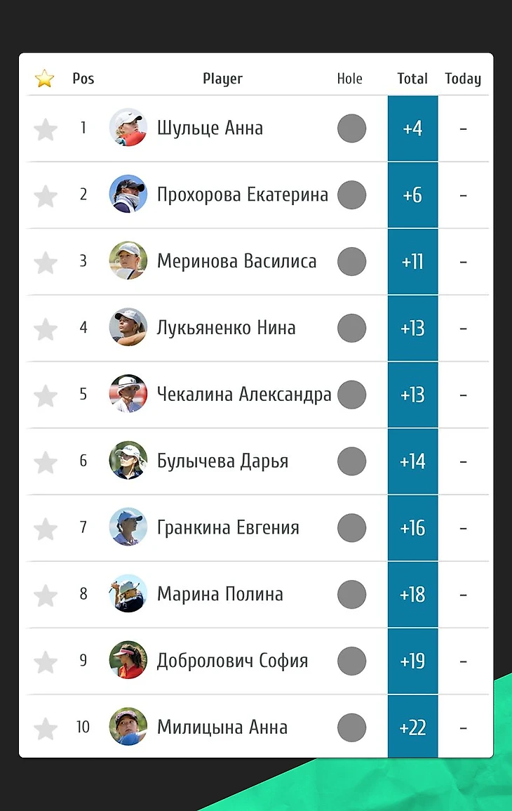 Завершая с мужским зачетом хочу от себя заметить, что обойти Егора сможет лишь тот, кто покажет фантастический уровень игры и не просто поймает «свой гольф», но реально окажется в прайме на последних 18 лунках этого чемпионата. Сможет ли кто-то сделать подобное? Скоро узнаем.