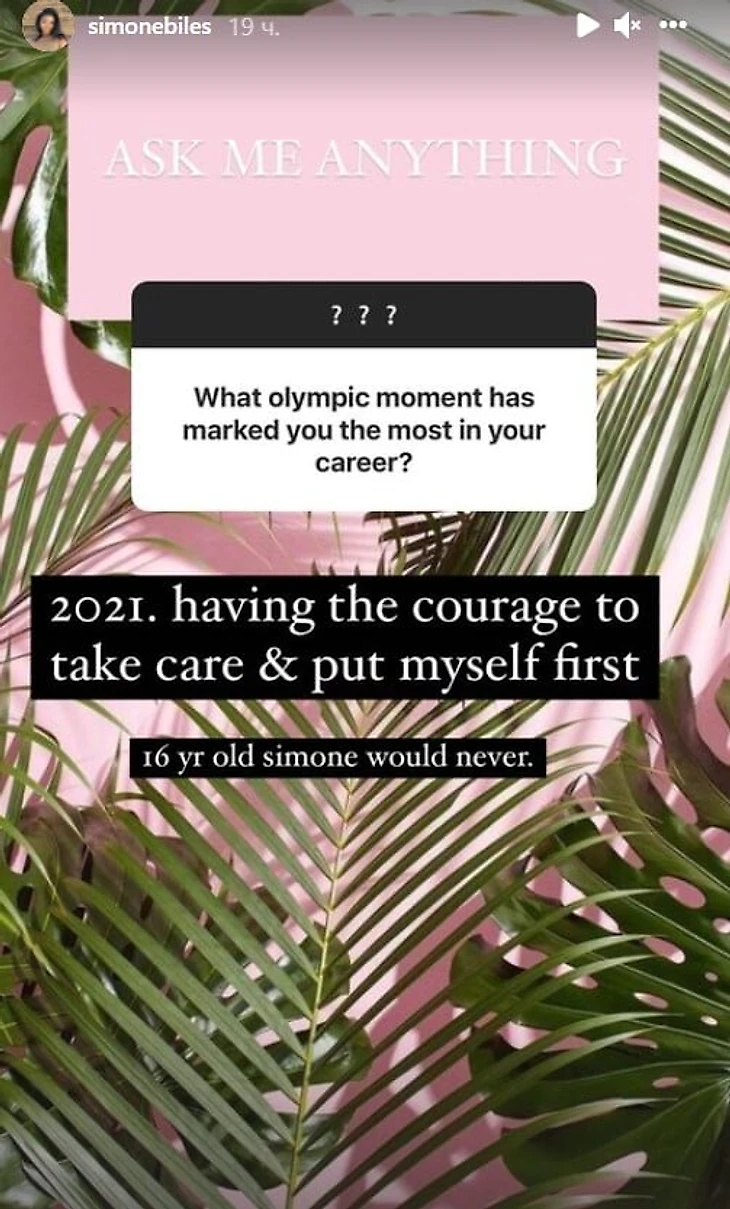 «2021 год. Я нашла мужество позаботиться о себе и поставить себя на первое место. 16-летняя Симона никогда бы так не поступила» – ответила Байлс.