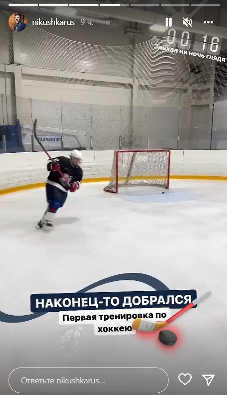 «Наконец-то добрался. Первая тренировка по хоккею.