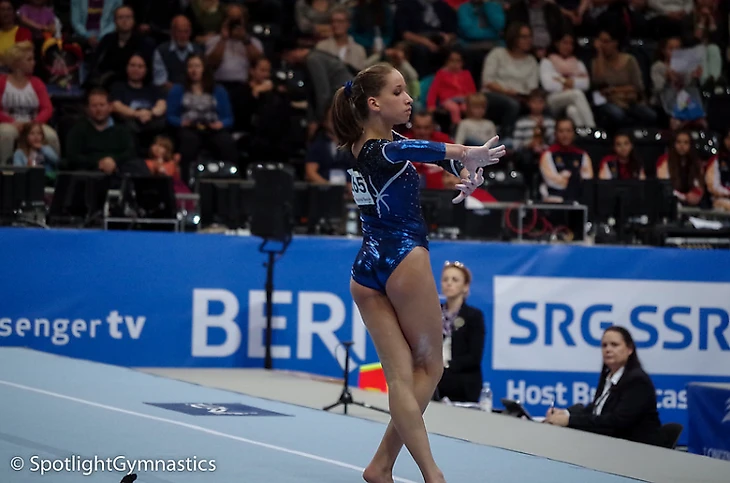 Акробатика более или менее неплохая, но хореографические элементы отсутствуют в принципе. Потому и оценка всего 13.033/4.9. Дауни на вольных отыграла всё, и стала чемпионкой Европы.
