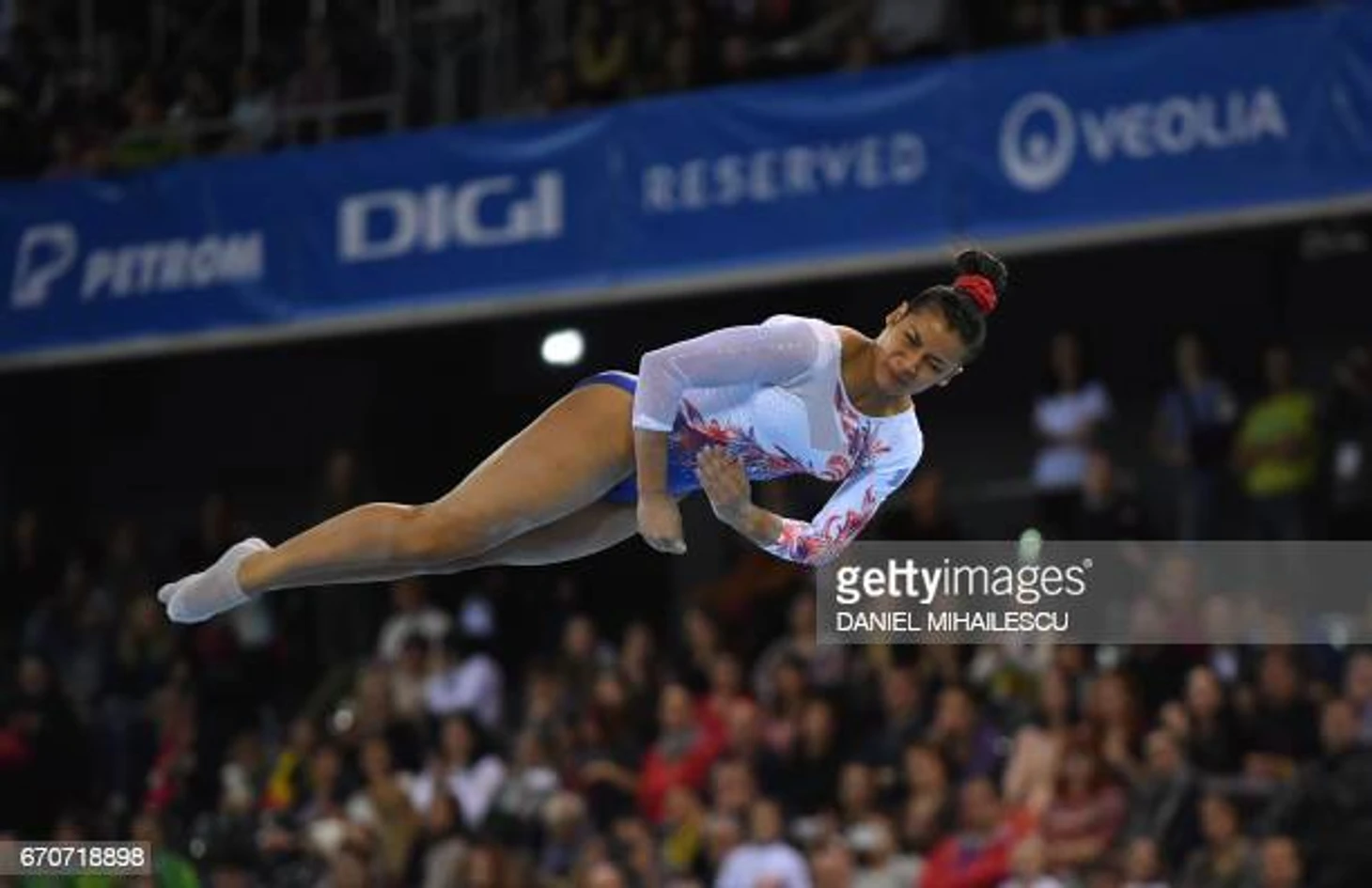 Ерёмина и на вольных не блистала. Ошибок и помарок всё же много, и оценка 13.300/5.2. В квалификации было 13.633/5.2. А Мелани Де Жезус Дос Сантос отлично исполнила опорный прыжок, получила за него 14.366/5.4 и выиграла бронзу чемпионата Европы.
