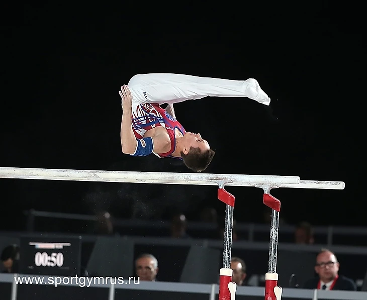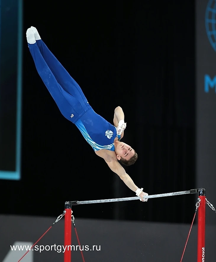 Перекладина. Чемпион страны Никита Игнатьев улетает далеко. Точнее, низко. Я бы скорее удивился, если бы Никита не упал и выполнил комбинацию так, как на Кубке России в Екатеринбурге.