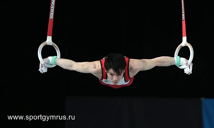 Японцы начали с колец не слишком уверенно. Лучший результат в тройке показал Ватару Танигава (14.433/6.0), но он не вошел даже в десятку. Кохей Учимура на кольцах не специалист, и его 14.000/5.7 результат неплохой.