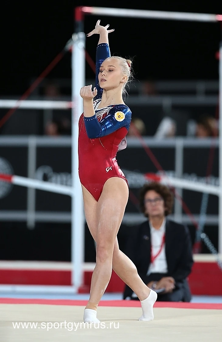 Полностью её выступление не видел, но на заключительной диагонали после двойного сальто прогнувшись Геля не устрояла, упала на спину и выкатилась за ковер… Получила она за этот «кувырок назад» 11.166/5.6 (-0.4 штраф). После этого «выступления» Геля плакала… Да кто бы не плакал?
