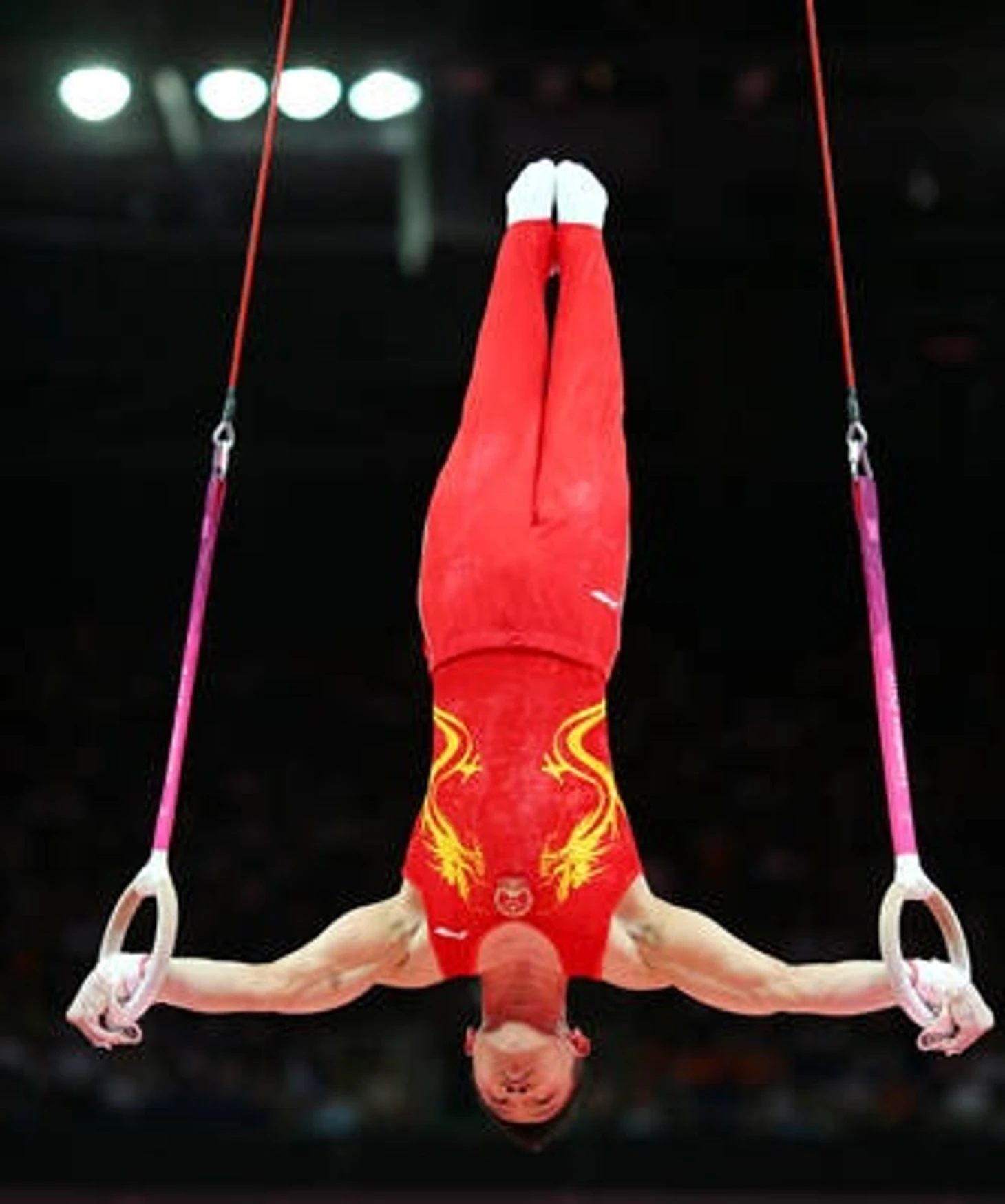Комбинация китайца была выполнена просто безупречно. Такие линии и такая силовая часть, плюс отличный соскок с раскрыванием. Начинается эра доминирования китайцев на кольцах.