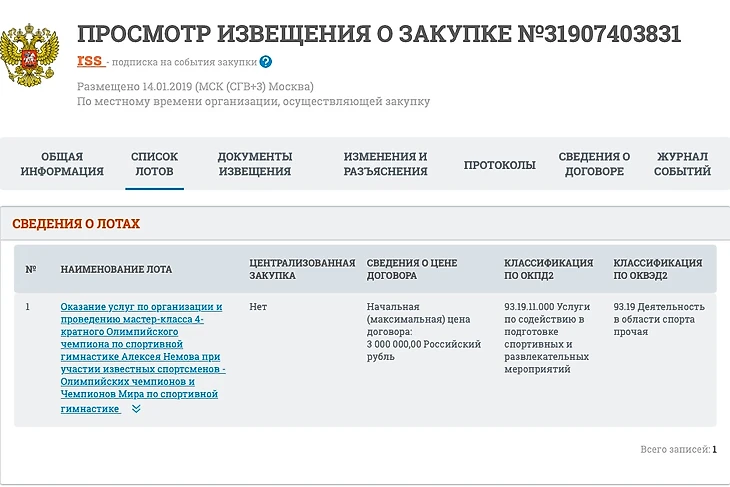 И последняя, самая большая статья расходов: гонорар 5 спортсменов, включая Хоркину и Немова – 2 680 000 рублей.