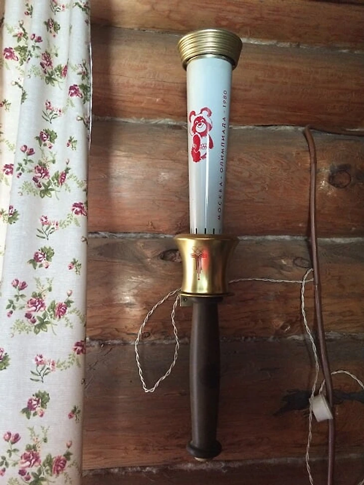 На фото ниже – светильник из настоящего олимпийского факела. Его собрали на Ленинградском научно-производственном объединении имени Климова – это оборонное предприятие функционирует и сейчас, специализируясь на производстве авиадвигателей. Но в конце 70-х завод принимал не только военные заказы – разработку и производство факелов для эстафеты олимпийского огня государство поручило ему.