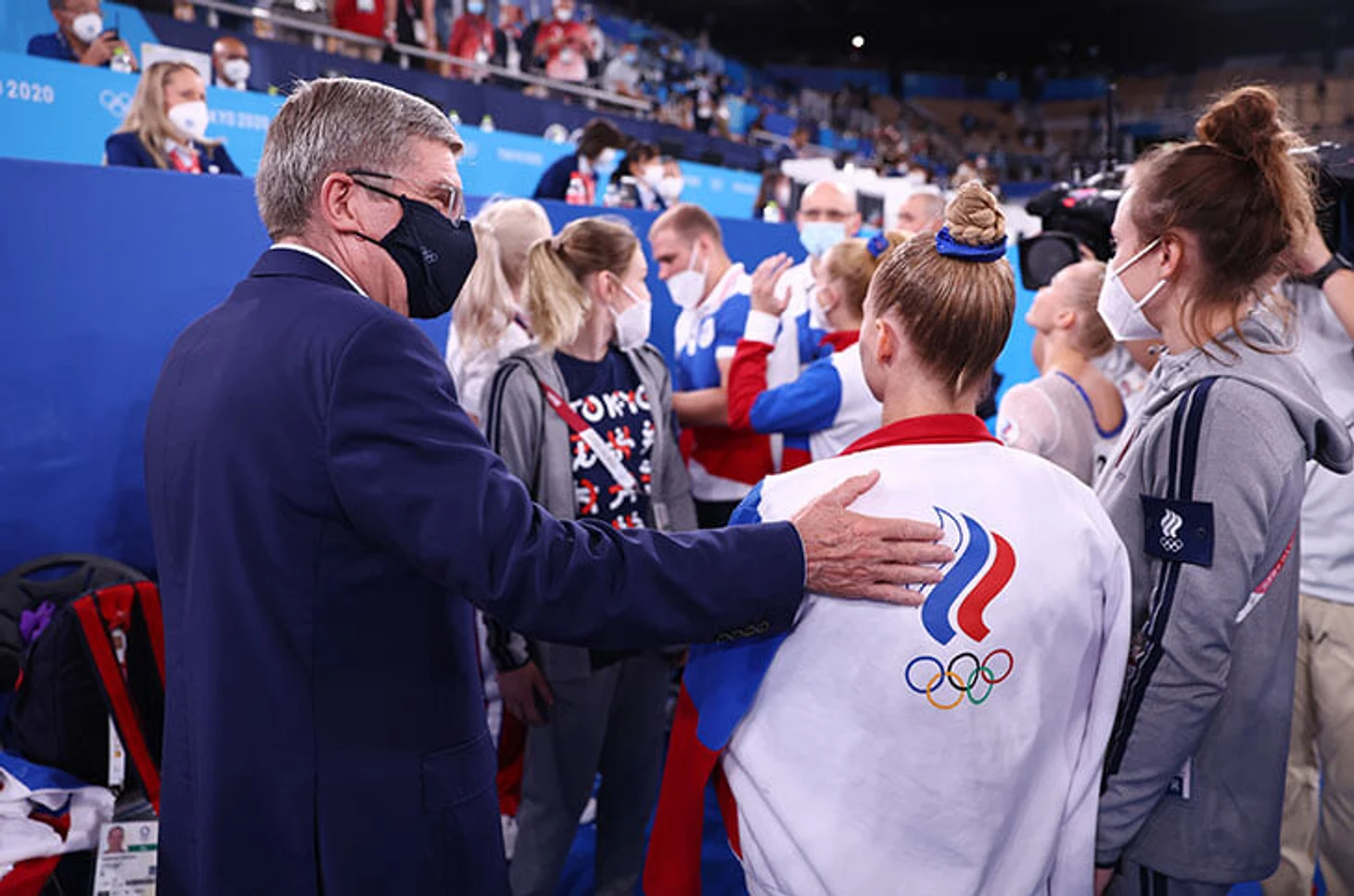 Байлс, кстати, тут же поздравила россиянок с победой. А потом с поздравлениями подошел и глава МОК Томас Бах.