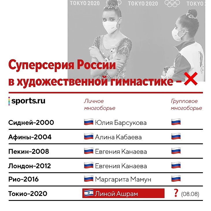 Главная сенсация Игр в Токио произошла в предпоследний день: золото в личном многоборье у художниц досталось не российской спортсменке – Линой Ашрам из Израиля. Чемпионская традиция, которой уже больше 20 лет, была нарушена – хотя перед стартом все говорило об обратном.