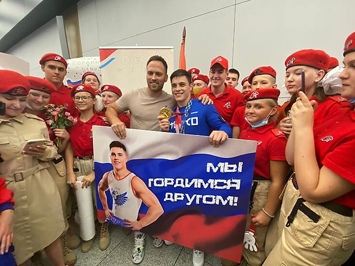 Предпоследняя партия олимпийцев вернулась пятого августа, и никого в Шереметьево не встречали так бурно. Скорее всего, дело в мужской сборной по спортивной гимнастике: Артур Далалоян и Никита Нагорный и так были самыми медийными олимпийцами (помимо суперзвезд из тенниса), а после первого за 25 лет золота их захотела встретить половина Москвы.