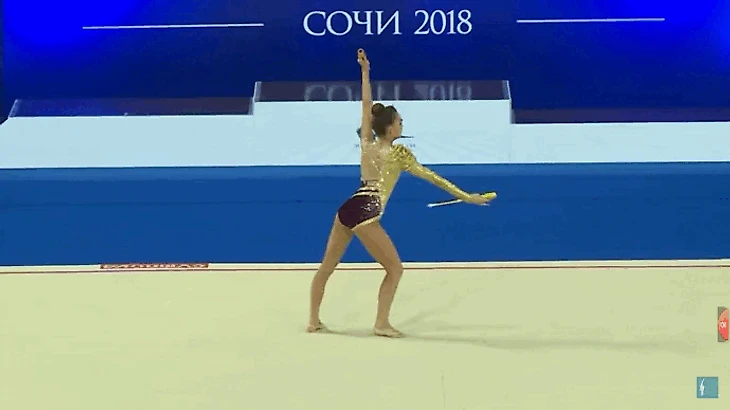 В трех видах Линой крутит 4 оборота в планше, которые стоят 0.7 балла (0.4 за первый оборот и 0.1 за каждый следующий). Но в упражнении с булавами она смогла сделать все 4 оборота на полупальце, а стоимость такого вращения уже 1.1 (0.5 за первый оборот и 0.2 за каждый следующий).