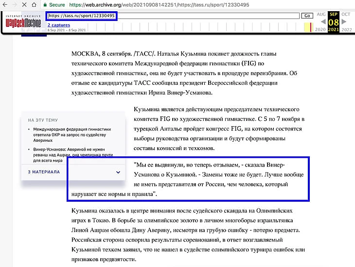Интересно, готов ли второй человек в FIG Василий Титов объяснять коллегам снятие Кузьминой словами Винер? И не возникнут ли после этого у него проблемы с выборами собственными?