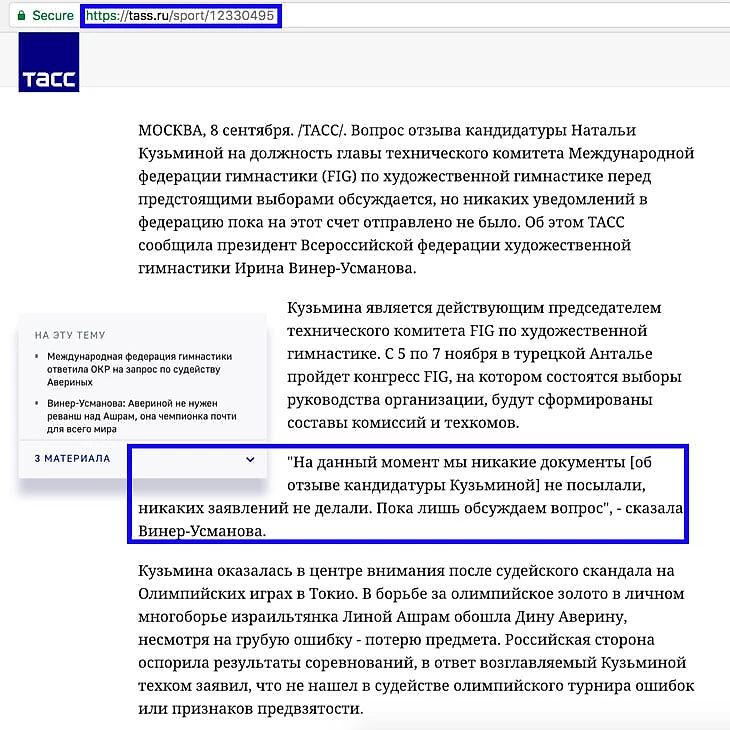 Но спустя некоторое время ТАСС внезапно отредактировал и текст, и слова Винер – теперь они звучали более дипломатично: