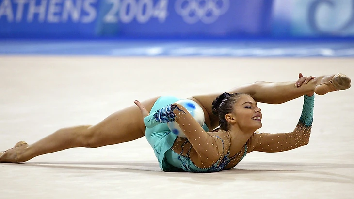В Грецию Алина Кабаева вновь ехала в качестве главной претендентки на первое место. Никаких оплошностей в Афинах она не допустила, уверенно выиграла все упражнения с предметами и заслуженно стала олимпийской чемпионкой. Серебряную медаль завоевала другая российская гимнастка Ирина Чащина, третьей стала украинка Анна Бессонова. В групповом многоборье вновь первенствовала сборная России. С Сиднея и Афин началось тотальное превосходство на олимпиадах российских гимнасток над всеми остальными командами.