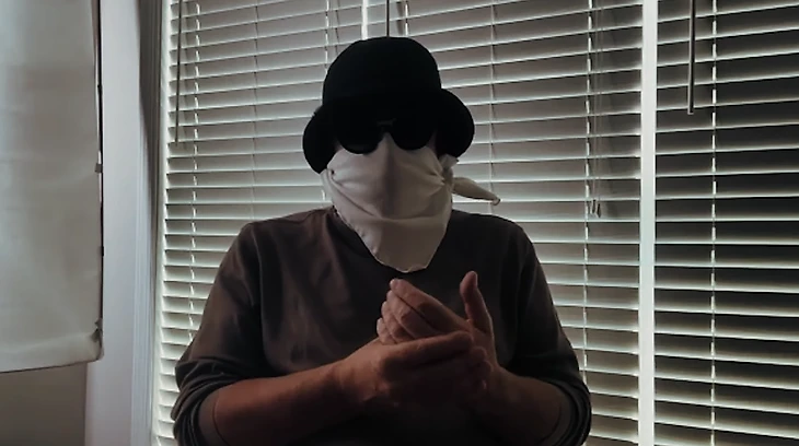 Родченков с 2015-го живет в США по программе защиты свидетелей. Он опять появился на видео – с замотанным банданой лицом, в больших черных очках и в панамке.