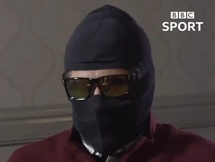 В тот же год он дал еще одно интервью – на этот раз BBC. И там почему-то прятался за балаклавой и темными очками: