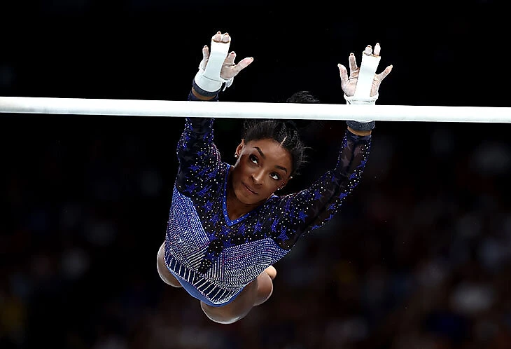 Но потом шли нелюбимые для Байлс брусья. Отношение Симоны к ним чувствовалось уже по разминке: соперницы полноценно пробовали комбинации, а Байлс сделала несколько неряшливых оборотов и ушла.