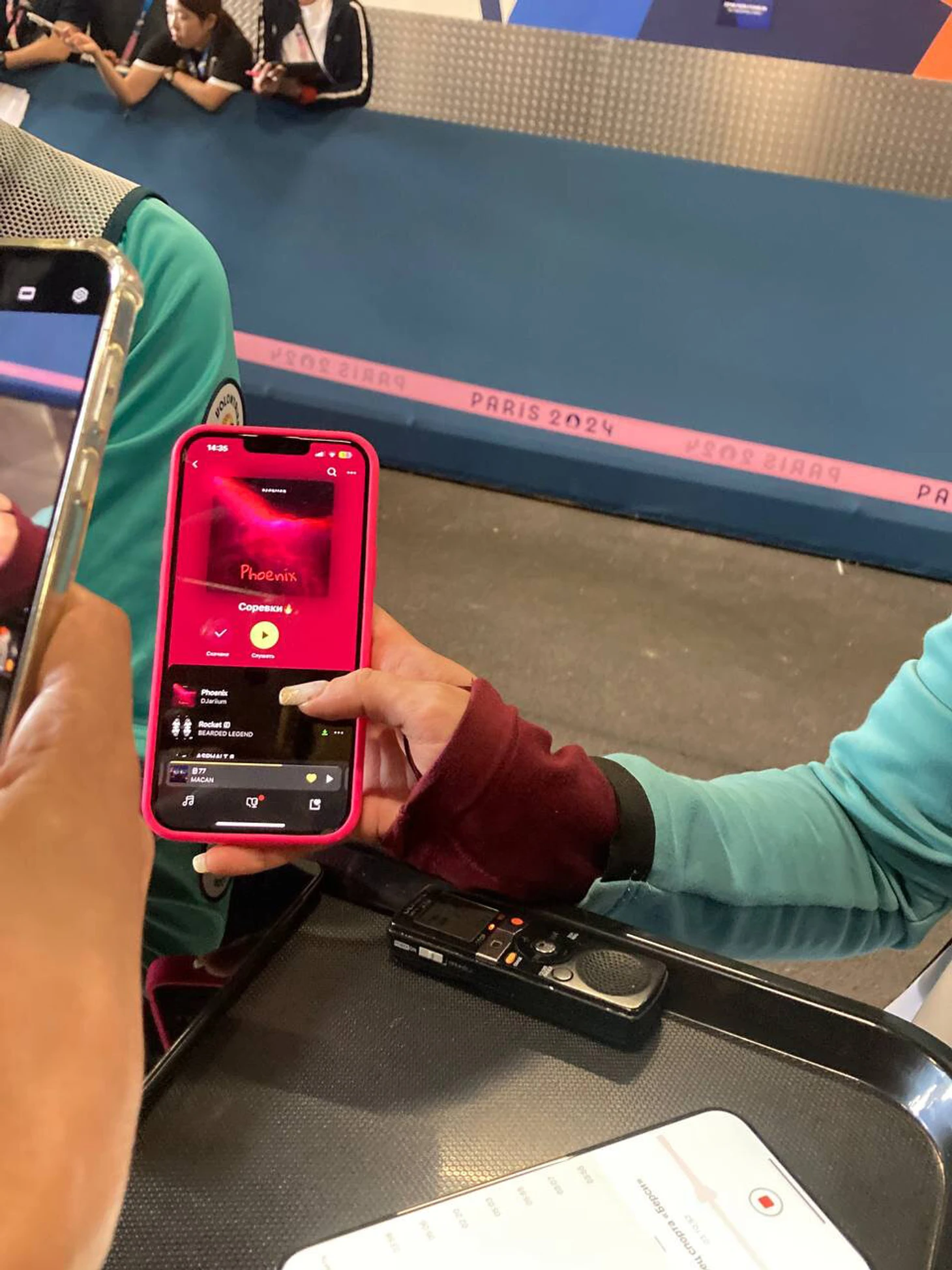 И Анжела действительно достает телефон и демонстрирует заранее составленный плейлист с говорящим названием «соревки».