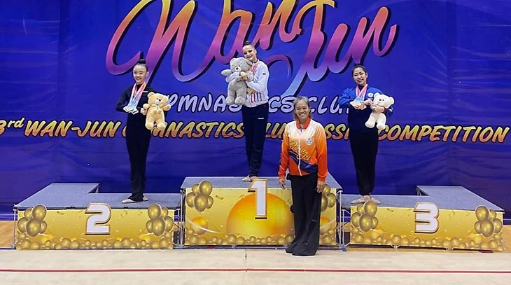 Начнем с успехов Милены Щенятской, которая завоевала пять(!) золотых медалей на соревнованиях в Бангкоке. В турнире участвовали спортсменки из России, Индии, Кореи, Тайваня, Вьетнама, Гонконга, Филиппин, Малайзии и Таиланда. Щенятская завоевала золото во всех пяти видах программы: с обручем, мячом, булавами, лентой и в многоборье.