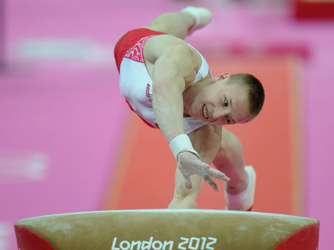 Денис Аблязин первый прыжок, 2.5 сальто согнувшись, выполнил блестяще. Но оценку ему придержали – 16.433/7.0.