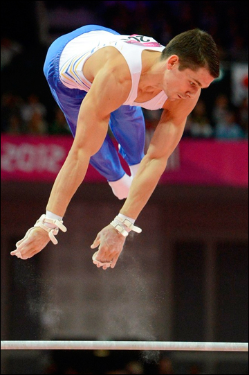 После первого дня лидировала команда Китая. Они начинали с перекладины, и первый снаряд провалили. Китайцы демонстрировали высочайшую сложность – и грубо ошибались. Ошибались показавший самую сложную комбинацию (7.4) Чжан Ченлон и Линь Чаопань, ошибся и лидер команды Ден Шуди… В общем, перекладина в китайском исполнении не впечатлила.