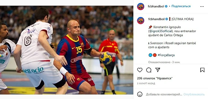 Константин Игропуло назначен помощником главного тренера гандбольной «Барселоны»