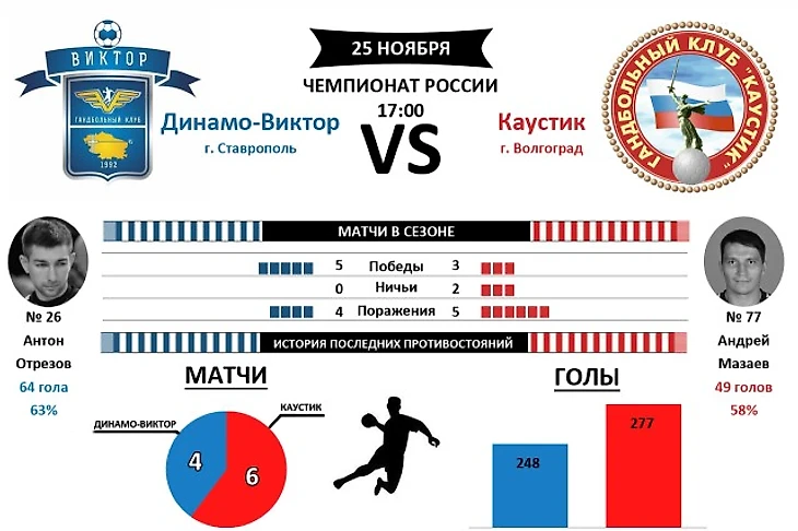 Несмотря на все разговоры с проблемой реализации у "Динамо-Виктор", цифры говорят, что динамовцы лучше "Каустика" в этом показателе, хоть и не на много - 57% против 56%. А также викторианцы забивают в среднем на один гол за игру больше - 28.5 и 27.6 у волгоградцев.