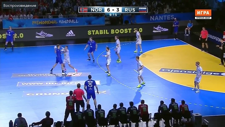 Рассмотрим начало матча Россия - Норвегия, где собственно и был сделан результат встречи.