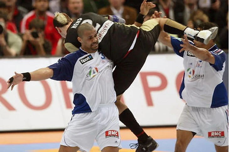 Помню эпизод из матча испанцев с тунисцами на чемпионате мира-2005. В одном из единоборств Уриос оказался в таком положении: одна рука на площадке (до шестиметровой отметки), во второй мяч, голова внизу, ноги вверху. И вот картина: одной ногой он бьет точно в лоб Хмаму и одновременно бросает. Итог: пенальти, удаление для одного из тунисцев и ушедший на скамейку Хмам, которому хорошо прилетело.