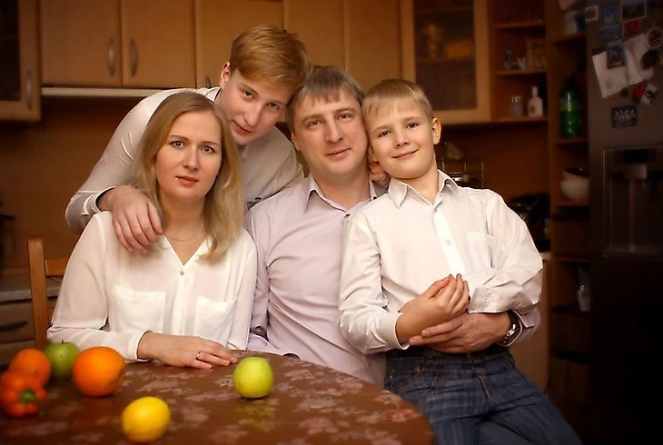 Александр в окружении своей семьи: супруги Марины и сыновей Евгения и Данила