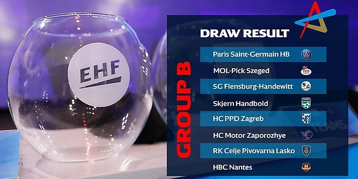 Группа "В": Пари Сен Жермен (Франция), Пик (Венгрия),Фленсбург (Германия), Скьерн (Дания), Загреб (Хорватия), Мотор (Украина), Целе (Словения), Нант (Франция).