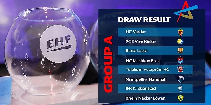 Группа "А": Вардар (Македония), Виве (Польша), Барселона (Испания), БГК имени Мешкова (Беларусь), Веспрем (Венгрия), Монпелье (Франция), Кристианстад (Швеция), Райн Левен (Германия).