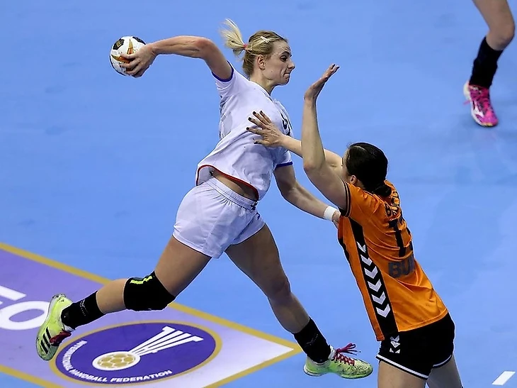 Правый фланг у француженок оказался совсем оголен, и закрывать его были вынуждены Камиль Айглон и Беатрис Эдвиж. Но даже эти проблемы не помешали чемпионкам мира одержать победу — 24:23 (10:12). Эстель Нзе-Минко с 5 мячами стала лучшим бомбардиром встречи.