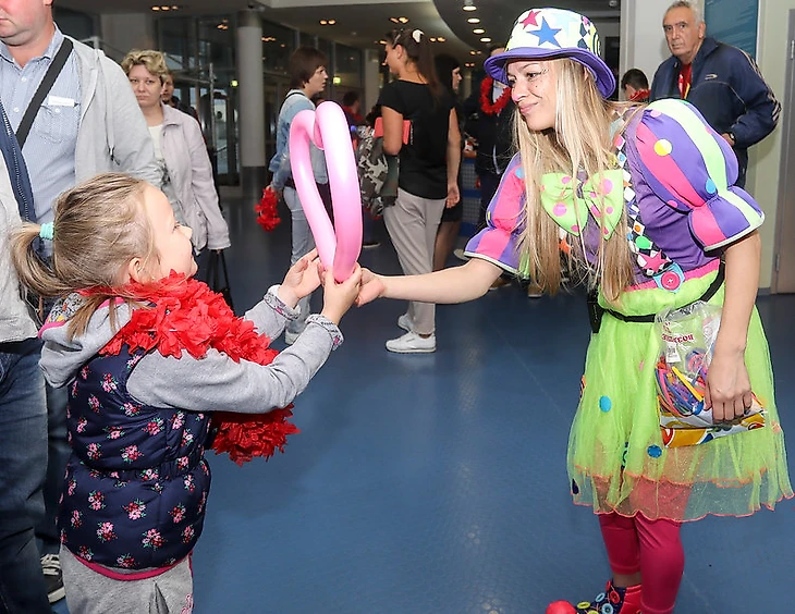 Дворец оборудован просторным фойе, где возможно проведение различных активностей для болельщиков, размещение точек кейтеринга, а также детских развлекательных зон. В зимнее время на арене работает гардероб.