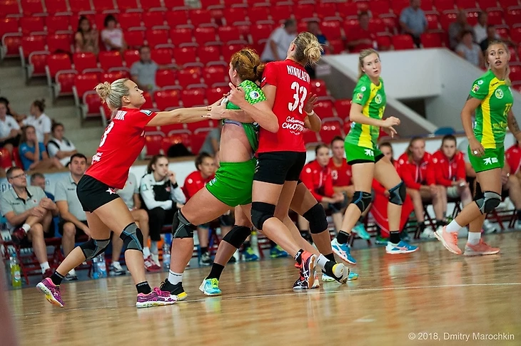 Ольга Башкирова хорошо броcила с края за двадцать секунд до перерыва. "Звезда" в ответной атаке бездарно вернула мяч соперницам, и те не побрезговали подарком: Голуб успела с голом за мгновение до сирены — 10:8.