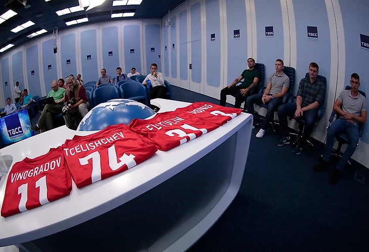 Пресс-конференция завершилась представлением новичков команды. Миндаугас Урбонас, Иналь Афлитулин, Лев Целищев и Михаил Виноградов получили игровую форму, у которой сменились и дизайн, и фирма-изготовитель. Не было только линейного российской "молодежки" Владислава Коршунова, которого не стали вырывать из процесса восстановления после небольшого повреждения. Василий Филиппов огласил результаты действий на кадровом фронте: