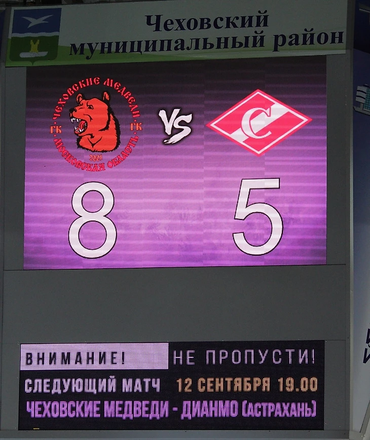 А симпатичные девушки из группы поддержки "мишек" танцевали не так зажигательно. Опечатка же в анонсе следующего поединка, который, если верить кубу чеховской арены, чемпионы России проведут против "Дианмо" из Астрахани, словно усугубляла несерьезность происходившего.