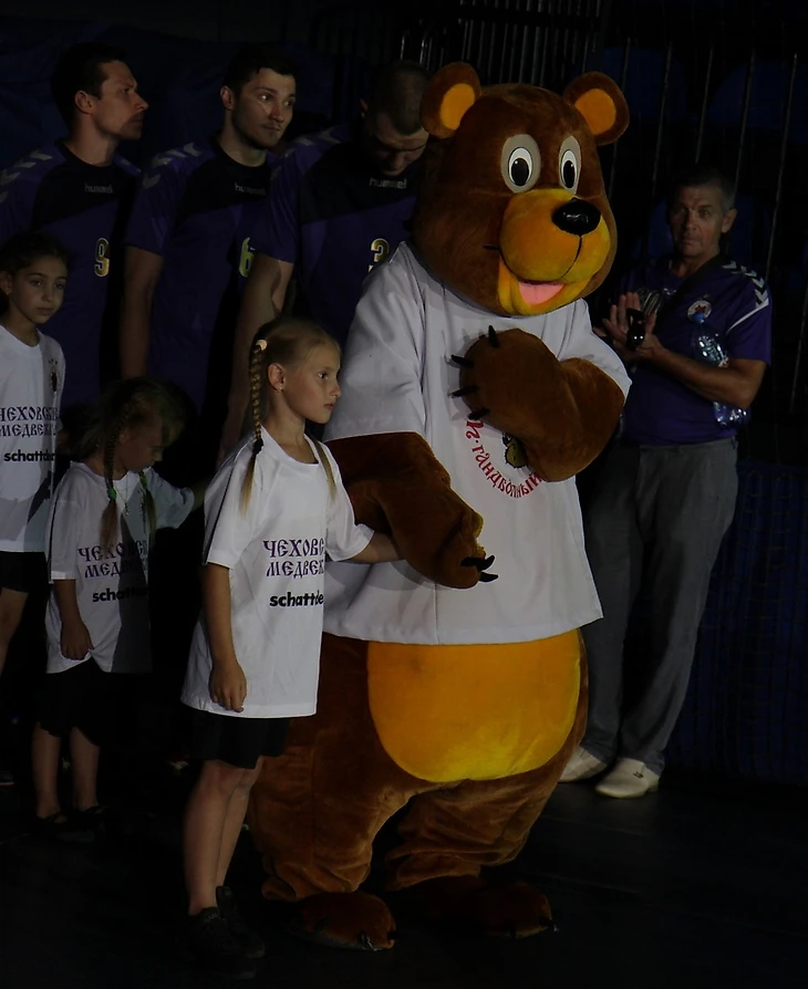 Матч начался в духе многолетней футбольной традиции: гандболисты вышли на площадку " Олимпийского", ведя за ручки детишек.