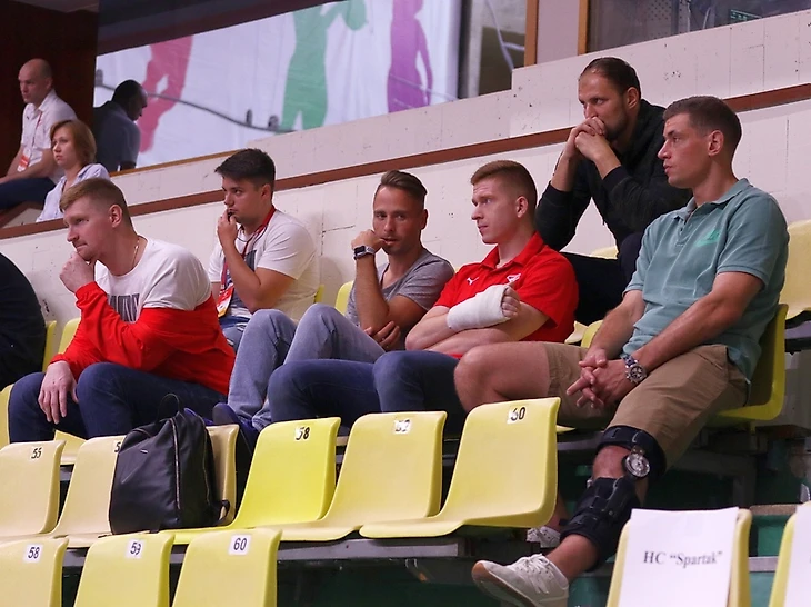 Заметно хромал Лев Целищев, сидел с ортезом на колене Егор Евдокимов, загипсована рука у Миндаугаса Урбонаса. Три пациента спартаковского лазарета расположились рядом, а на их лицах читалось жгучее желание помочь товарищам…