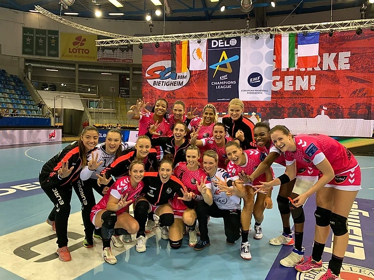 Впрочем, аутсайдер "Битигхайм" дал гостьям из Бретани бой. Если поначалу дела у хозяек складывались так себе и к 15-й минуте они уступали 8:12, то затем команда Мартина Альбертсена наладила в игру в обороне и к перерыву вырвалась вперед — 18:17.