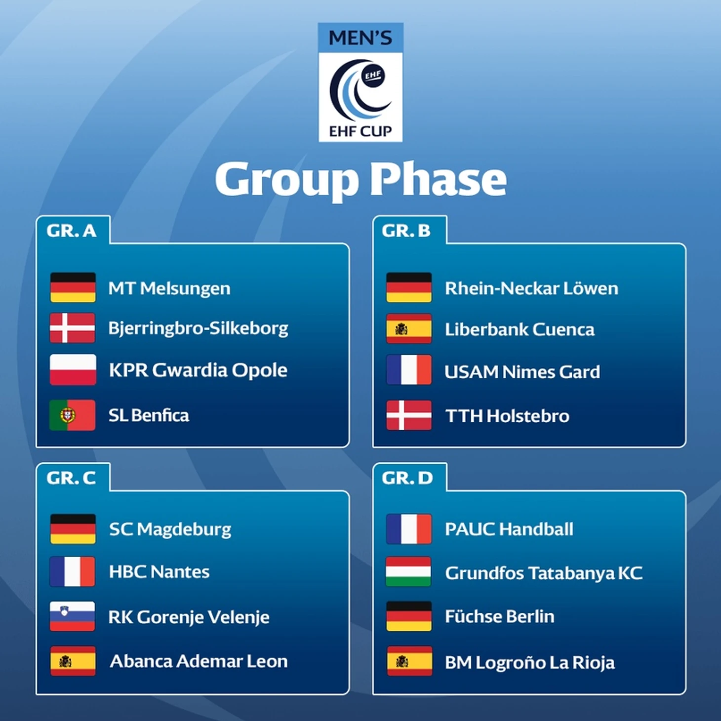 Мужчины. Кубок ЕГФ. Групповой раунд. Жеребьевка