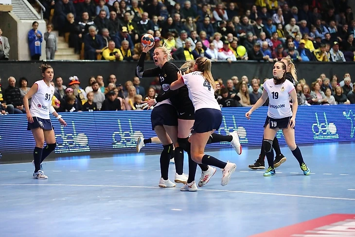 В первом тайме Ян Лесли загадал Амбросу Мартину череду задач — все из числа предсказуемых: опека с фактическим исключением из позиционных атак Анны Вяхиревой, переход на атаку "7 на 6" на рубеже критичного отставания в три гола, прицельный обстрел из задней линии в исполнении Екатерины Ильиной и Ольги Горшениной. Добавим в бонусную придачу вратарский кураж Шаны Массон.