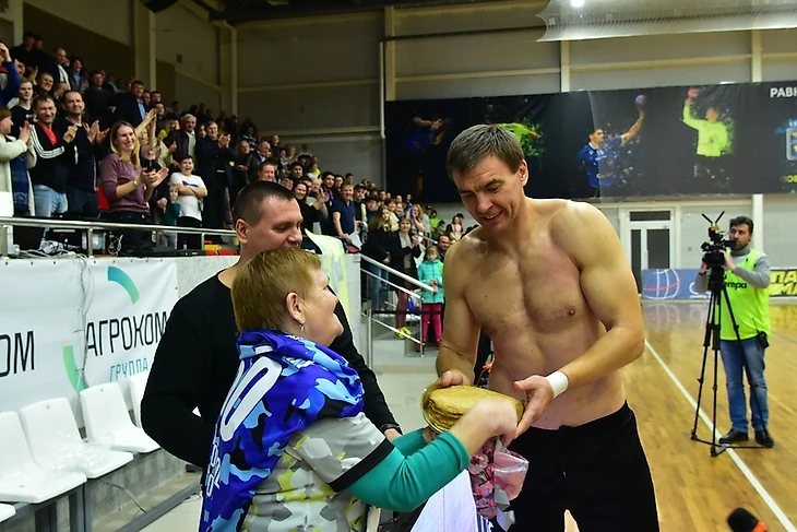 Когда "голос арены" Максим Захаров закрыл церемонию, заметил ее среди зрителей. Сразу подошел: о, любимая болельщица, да еще и с блинами! Снял игровую майку и подарил ей. Назавтра она мне написала, что с таким подарком ей никакие болезни не страшны.