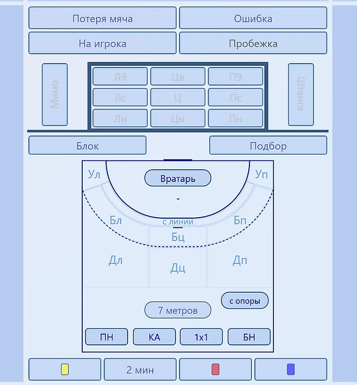 Есть у нас и мини-версия. Ее работу обеспечивает один оператор. В ней не фиксируется, откуда производятся броски, в какую область ворот влетает мяч, нет голевых передач. Но дается полная статистика по броскам, соответственно и вратарская статистика отражается в полном объеме.