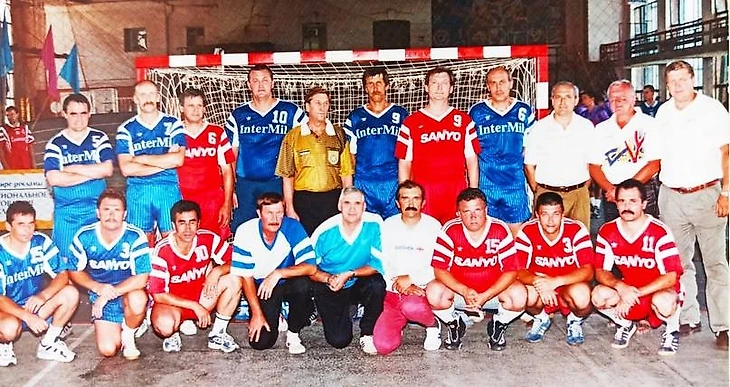После матча ветеранов кубанского гандбола. Краснодар, конец 80-х. Верхний ряд:Владимир Кушнир, Александр Хрыпов, Юрий Безуглов, Анатолий Скоробогатов, Владимир Кияшко, Павел Моржов, Владимир Репьев, Василий Тхорев, Владимир Морозов, Михаил Киселев, Евгений Трефилов; нижний ряд: Сергей Иванов, Юрий Дроботов, Леонид Милиди, Игорь Пануров, Владимир Пьянков, Евгений Семак, Сергей Приголовкин, Сергей Ладыгин, Андрей Стригин.