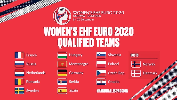 Остановлена и не будет доигрываться квалификация женского чемпионата Европы 2020 года. Состав его финальной стадии сформирован по итогам аналогичного турнира 2018 года: сборные Франции, России, Нидерландов, Румынии, Норвегии, Швеции, Венгрии, Дании, Черногории, Германии, Сербии, Испании, Словении, Польши, Чехии, Хорватии. Проформы ради оговорено, что команды Норвегии и Дании проведут турнир в статусе его хозяек.