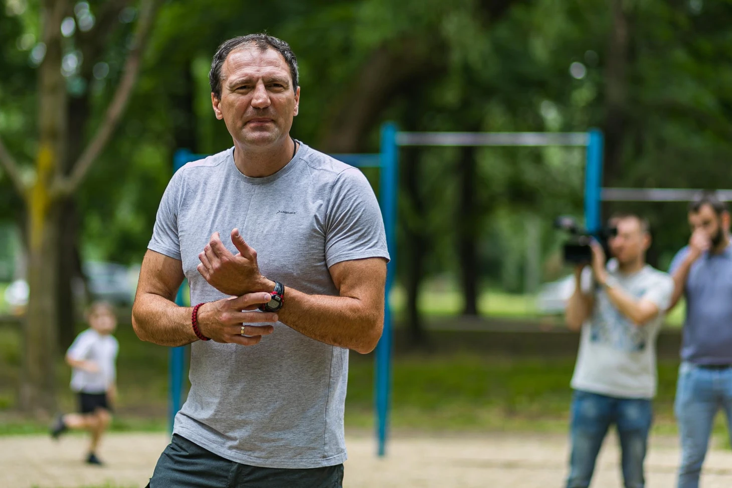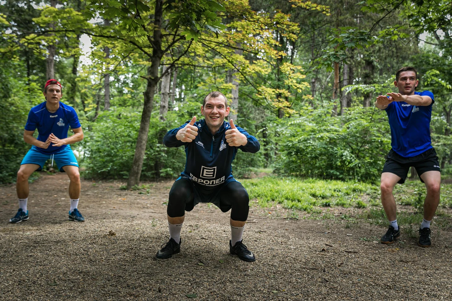 Сперва гандболисты приседали на скорость. В течение минуты следовало успеть выполнить не менее шестидесяти повторений. Затем – подтягивания, игра в «пирамидку». В заключении – отжимания не менее пятидесяти раз. Тренерский штаб при этом следил за правильной техникой выполнения упражнений. Практически все спортсмены сдали нормативы.