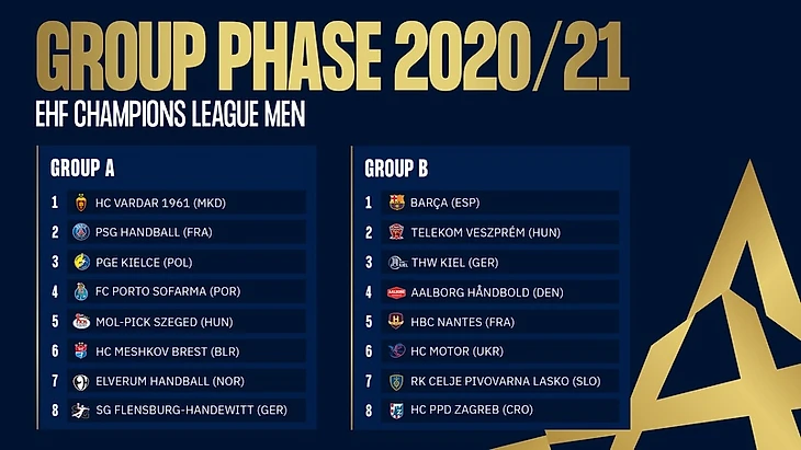 Группа "А": Вардар (Северная Македония), Пари Сен-Жермен (Франция), Кельце (Польша), Порту (Португалия), Пик (Венгрия), БГК имени Мешкова (Беларусь), Эльверум (Норвегия), Фленсбург (Германия).