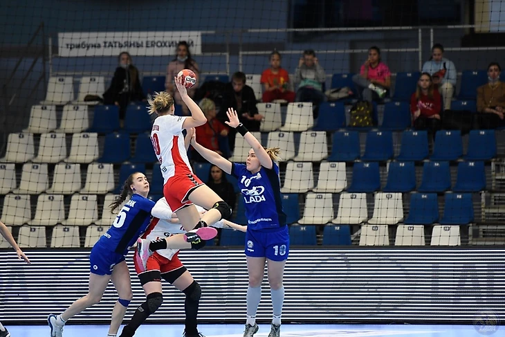 Тольяттинкам и дома выпала несладкая участь догонять соперниц на протяжении большей части матча. В нем был лишь один отрезок отчетливого преимущества хозяек в первом тайме, когда при отставании в три гола Алексей Алексеев перестроил оборону на схему 5-1. Она явно затруднила гостьям позиционные атаки и помогла волжанкам вырваться вперед на пару мячей — 13:11.